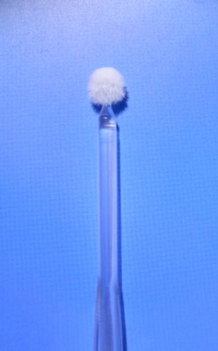 本公司生產(chǎn)的DNA提取球形拭子是一種特別適用于96孔板微量提取的提取工具,采用尼龍纖維技術制作而成,前端涂有以垂直方式固定的尼龍短纖維,使得整個采集拭子采集區(qū)域內部無吸收孔,DNA細胞不會分散滯留纖維之中,有利于更快更高效的洗脫。拭子頭部小,使用時將拭子頭插入96孔板小孔中,稍用力即可折斷,將拭子頭整體滯留于小孔中進行后續(xù)操作,不需人工剪碎,操作簡單,耗時短,可以大大提高工作效率,特別是避免樣品間的交叉污染的問題,使檢測準確率高。拭子懸空放置于管體內,防止檢材因包裝粘附而受到污染。管底配有特殊濾膜,保證管內外空氣通透性,防止檢材霉變,同時濾去外部空氣中可能影響檢材質量的小顆粒雜質,便于樣品長期儲存。